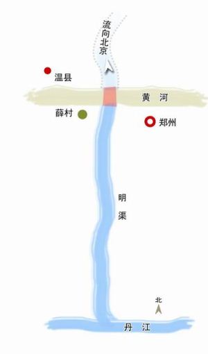2010年,南水北调通水后,在荥阳薛村观礼台上将出现一个巨大的景观:向北看,浑浊的黄河水一路向东缓缓流向大海,而观礼台南面,清澈的丹江水沿着地上明渠从南面奔腾而来。长江和黄河,这两条中国最瞩目的河流将有机会“水乳交融”。