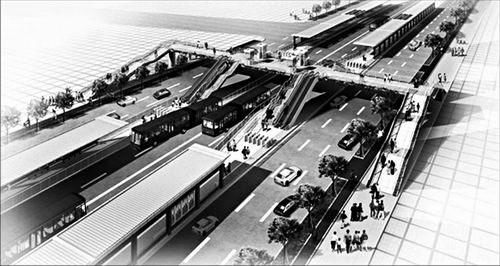 本月起,广州市第一条快速公交(BRT)试验线将全面动工。规划在天河路至中山大道(天河立交-黄埔区下元)马路中央建BRT车站,划出两条专用车道(双向)供BRT公交车行驶。现有67条公交线将分流10余条,23条纳入BRT,34条仍走普通车道,全线多个大路口将取消左转。计划投资近13亿,年底竣工,明年初投入运营。