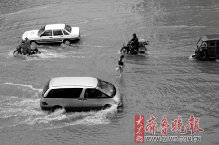 8月10日21时许,记者在日照市黄海一路看到,暴雨造成了路面积水严重,车辆在积水中缓慢行驶,不少车辆在雨中抛锚。