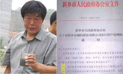 对制药厂存在的这些违法问题,早在2005年11月24日,不断接到群众举报的市环保局就向新乡制药厂下达了《责令停产(纠正)违法行为通知书》,明确指出“经查证,你单位未经环保部门批准,于2005年7月中旬,擅自将淀粉仓库改建成制药车间,进行25号(中间体代号)产品试生产……如继续违法或在限期内不纠正违法行为,我局将依法予以从重处罚”。
