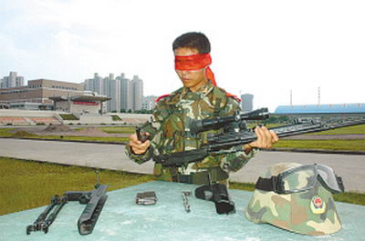一支小分队格外引人注目:战士们一字排开,个个头戴钢盔、身着厚重衣服、手端狙击步枪……全副武装地匍匐在训练场一侧的水泥地上。他们就是神秘、令罪犯闻风丧胆的狙击手,正在练习瞄准。