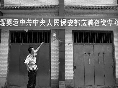 “在太康县龙曲镇龙城,有一门店上悬挂着‘迎奥运中共中央人民保安部应聘咨询中心’的横幅招聘广告,是不是假的呀?”9月5日,有读者向记者打来热线电话举报。