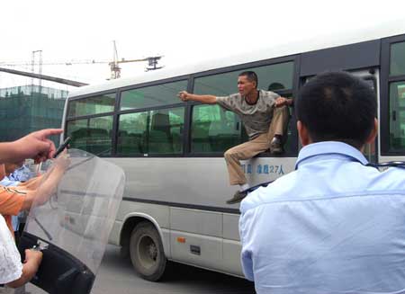 “老子有艾滋病,不怕死的就上!”张某一边挥舞着注射器,一边声嘶力竭地对围上前的民警大喊。11时20分许,警方发射了催泪瓦斯,受到刺激的张某突然向10多米外的围观人群冲过去,嘴里叫嚷着:“老子死也要拉个垫背的!”