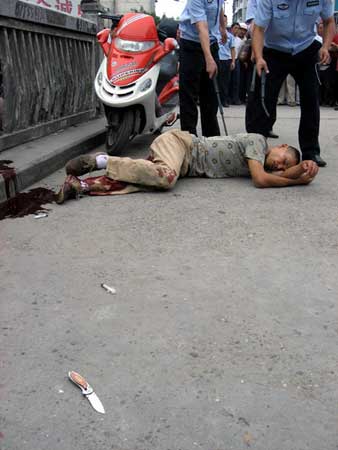 张某被制服后,警方事先通知的120救护车赶到了现场,将张送往医院救治。目前,有关案情仍在进一步调查中。(文/图 丁伟)