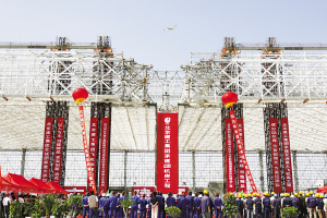 据了解,钢屋盖提升到顶后,将与机库的钢柱焊接,预计1个月完成,之后将进行外围护结构施工———给钢结构穿上彩钢板及玻璃幕墙外衣。(记者马力)