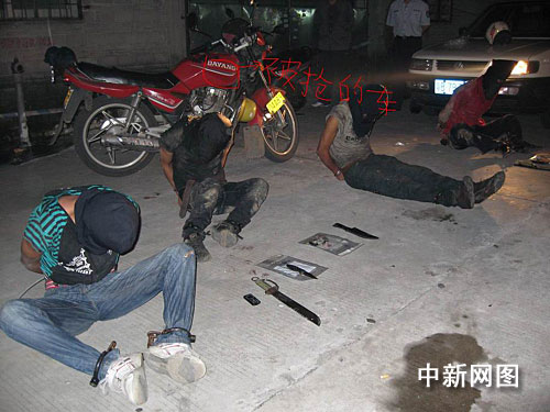据了解,9月8日23时许,两名男子在佛山机场路口骗一名搭客摩托车司机到佛西路后,共有5人持刀对摩托车司机拳打脚踢,抢走手机一部,现金一百多元及摩托一辆后逃跑。正巡逻的佛山市公安局打“两抢”专业队便衣警员发现后展开抓捕行动。