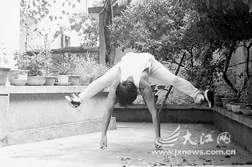 乐平市城管部门工作的张雄,十年前做了开刀手术后,身体非常虚弱。2001年,为了强身健体,张雄开始师从乐平武术名人张锦荣学习武术,他对带有气功性质的传统武术双臂一指禅情有独钟。