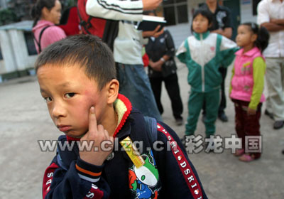 “孩子拿了同学的东西也不能这样对待他啊!”昨天下午6点左右,黄瓜营小学一片喧嚣,一年级1班的小学生小明的爸爸家长正和老师站在学校院子里交涉着。小明站在一旁不愿说话,脸上的淤青清晰可见。7岁的小明由于偷偷拿走了同学的笔,被班主任林老师指使班上其他6名同学,在昨天早上的语文课课堂上,一一上前上对他扇耳光。