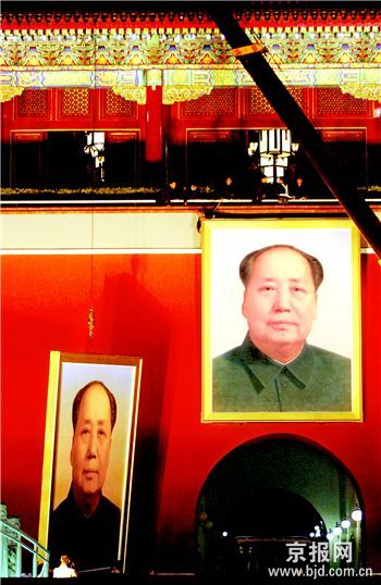 昨(9月27日)晚,一幅色泽饱满崭新的毛主席巨幅画像被吊车平稳地挂上粉刷一新的天安门城楼上。按照惯例,毛主席的画像每年都要更换一次,一般是在国庆节前几天完成。
