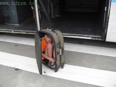 当日18时许,便衣民警发现一个大行李箱有重大嫌疑,打开一看,一个瘦小的少年正蜷曲藏在箱内,这个少年正是嫌犯沈某。同时,大巴旅客中一名白衣男子也引起了民警的注意。该男子空手下车后,看见有警察在场不取行李即转身离开,民警立即上前将他控制并带回派出所审查,他正是沈某的同伙何某。