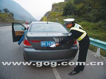 10月10日早上9时许,(注:贵州)省交警总队直属支队贵新三大队交警邵华以及协勤谢宏春在贵新公路辖区内巡逻,当巡逻至贵新公路137公里都匀南主道收费站时,看见一辆正准备通过收费站的“宝马”车悬挂的“粤A”牌号有问题,谢宏春示意该车停下接受检查,这辆“宝马”驶出收费通道后,将车停了下来,几秒钟后,该车驾驶员将头伸出车窗,“发现交警的车是辆捷达,想来追不上宝马”,于是,该车驾驶员马上启动车子,同时还将手伸出车窗向谢宏春来了个“再见”,随即一溜烟绝尘而去。