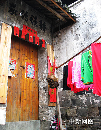 第二天五点刚过,几个摄影爱好者就已经出门去“创作”了,而我们则睡到太阳东升才悠闲地在古村游荡。清晨的古村很安静,偶尔才见一两个挑着筐的村民。一栋栋青瓦木屋都建有封火墙,封火墙之间是狭长弯曲的幽巷。每户农家的院子都种有果树或花草,三五位长者闲坐在自家木门前聊天,间或友善地看看过往的游人。那池塘的残荷,古朴的木屋,门窗上精妙的雕花,屋檐上艳红的灯笼,挂满南瓜花的竹篱……所有的一切,都是那么纯朴与自然,让人的心,也回归于宁静与淡泊。