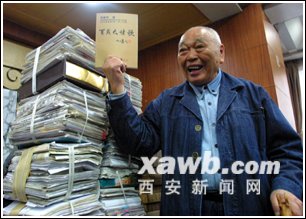 为了创作需要,他通过借杂志报纸复印、在图书馆查书、网上下载资料等形式收集资料,在莲湖路的家中堆放的资料足有3米高,内容包括全球30多万名百岁老人和1万多对百岁夫妻的养生之道。他的作品中大量讲述了百岁老人的故事,友善、诚信、乐观充满了字里行间。为了写作,70岁时,他学会了使用电脑来收集整理资料,74岁时,他学会了上网。2004年,他患中风住院,就用左手写完了后面的著作。(记者 谢伟)
