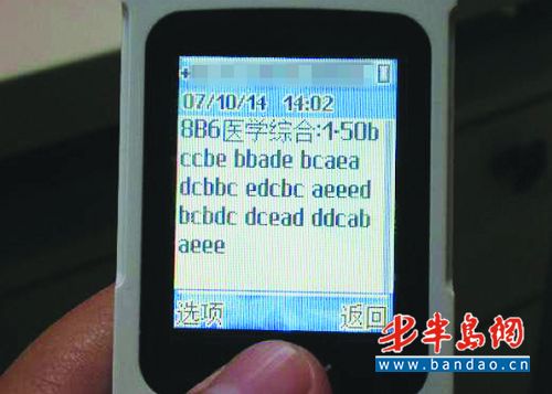 今天一早,万女士再次接收到了短信,此次发的全是“ ABCD”的考试答案。万女士告诉记者,她实在受不了了,只得将手机呼转至朋友手机上,然后将自己的手机关了。今天下午,万女士再次将手机打开时,发现自己的手机里竟然有 50余条未读短信,全是对方发来的答案。万女士告诉记者,4天内她一共接收到了 100多条短信。