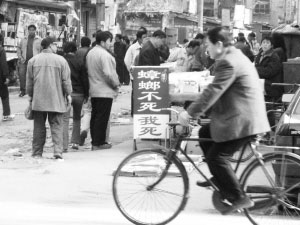 昨日,抚顺市新抚区西七路附近,一个卖蟑螂药的商贩打出了上面的招牌内容来吸引市民。