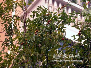 家住省城铁路九村8栋的王先生家的枣树有些特别,一年竟然开两次花,结两次果实。今年9月,本已进入休眠期的枣树再次开花结果。