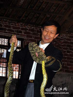 10月16日,本报(注:江南都市报)记者赴宜春向蛇王老黄拜师学艺,既感受了随蛇王体验抓毒蛇时的心惊胆战,也听到了蛇王惊心动魄的历险故事。