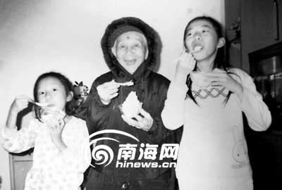 18日上午,记者来到孙美花老人的家中。当时,孙阿婆穿戴得整整齐齐,正准备和女儿一起乘车去三亚游南山。孙阿婆虽然头发花白,但眼睛很有神,精神爽朗,脸上几乎没有皱纹,怎么也看不出她已经有100岁高龄。