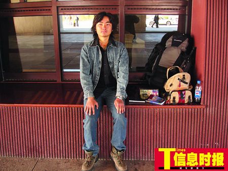 “骑着一辆残旧的单车,穿着灰色的牛仔衣、深蓝色的牛仔裤,长长的头发随风飘散,胡子拉碴一张黝黑的脸。”这就是大学生朱金禄流浪中的写照。