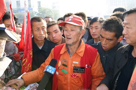 10月22日,记者见到了63岁的尚志德老人。他面容黑瘦,头戴一顶红帽,骑着一辆破旧的自行车,上面插着几面布满灰尘的彩旗。据了解,尚志德老人于2001年5月1日从黑龙江省牡丹江市出发,独自骑着自行车越过我国最北边的漠河,走过辽阔的内蒙古大草原,经过冰天雪地的西藏。