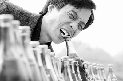 “开始!”宋老板发出命令后,胡耀辉左手抓起啤酒瓶,轻轻一咬,瓶盖已经含在嘴里。白白净净的胡耀辉没有一点面部表情,轻松得就像喝凉水一样。