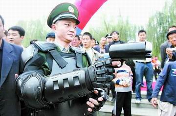 这是郑州市政府特别为执法队员配备的,全市共有110套。据了解,每套防护服造价约2300元,每只网枪造价约1600元。