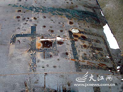 记者现场看到,呈半拱形的火箭整流罩金属残骸长约4米,宽约1.5米左右,表面呈乳白色,背面为光滑的金属色,表面有明显的烧灼痕迹。残骸上面可清晰地看到“中国”两个大字和“卫星操作口”、“CZ4-10-1”等小的字样,其表面还有一扇可以打开的小金属门。