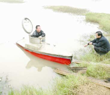 黄家湖大学城附近的一个池塘边,67岁的蔡甸农民李玉明看着新鲜出炉的“霞光五号”,嘴角露出一丝微笑。昨日,他设计制造的“霞光五号”第二次试水,此前因技术问题致试水失败。