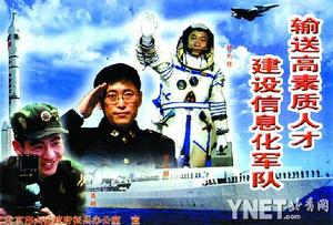 “今年在媒体上刊登的征兵公益广告总计四次,贯穿着整个征兵宣传期。”市征兵办有关工作人员说,“征兵公益广告每次宣传的主题和内容各不一样,比如第一次的画面凸显身着2007式新军服的三军将士,让大家了解人民解放军的组成;第二次的画面中以雷锋、杨业功、李中华为主体,加上隐在背景中的黄继光,弘扬的是革命英雄主义;航天英雄杨利伟、大学教授方永刚、北大学子兵高明是第三次广告的主体,以吸引高素质人才。”