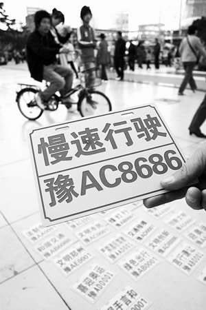 男子说,目前这些车牌还处于宣传阶段,他希望有关部门能借鉴他的创意,对电动车实施挂牌管理,别简单地一罚了之。