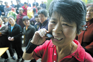 平常人们都用坚果之类的食物锻炼牙齿,而家住鱼洞的陈凤芝老太采用的“食物”比较特别:花岗石、灯泡玻璃、陶瓷汤瓢……昨日,57岁的老太陈凤芝在鱼洞丰华路自己开推拿诊所门口,街坊邻居亲眼见证她将嚼碎的石头吞下,这一幕让大家都看得瞠目结舌。而陈老太以这样的方式锻炼牙齿已有十多年,身体却无异样。