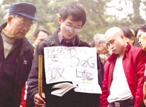 什么样的乞丐,竟拥有“粉丝”?出现在记者眼前的是一个年轻男子:1.65米个头,穿件灰扑扑外衣,鼻梁上架着眼镜,右手杵根竹拐棍,左手拿《增广贤文》,念念有词。