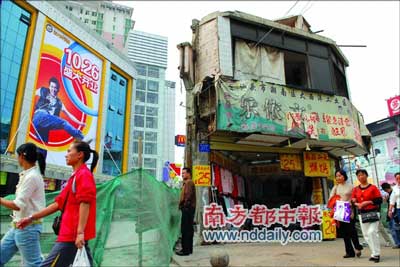 本月9日开始,一篇题为《长沙最牛钉子户三年未拆除》的帖子开始在网上各大论坛流传,将默默挺立了三年的三颗“钉子”摆到了人们眼前:一座全新装修、开业不久的商场大楼,门前广场靠马路边处,则是相距不远一字排开的三座破旧房屋。