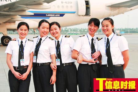 昨日,南航5名妙龄女飞行员分别驾驭银鹰胜利完成她们的首次载客飞行。据悉,这是南航招收的首批女飞行员,她们均出生于上世纪80年代中期,2003年考入中国民航飞行学院,今年顺利毕业后进入南航工作。据介绍,女飞行员虽然相貌要求不如空姐高,但也应该五官端正,精神抖擞。她们也代表着航空公司的形象。