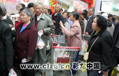 昨天(11月14日)是工作日,因此排队的人群中少见年轻人。老人们不但挤在低价油的商品区,还堵在出口处服务台,参加同时展开的抽奖活动。之后,400多桶食用油在1个多小时内销售一空。