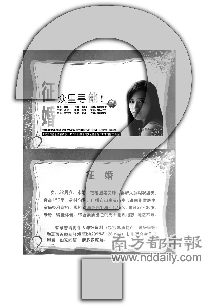 广州一神秘富家女花50万元登广告征婚引争议(图)