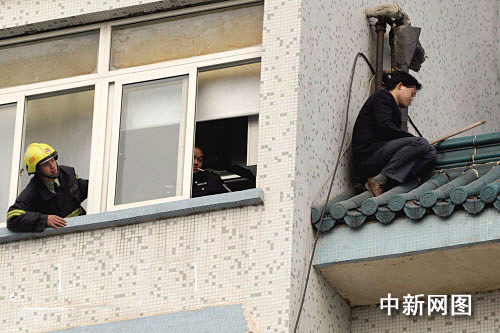 中新网杭州11月15日电(记者 柴燕菲 通讯员 俞春杰 曹佳芸)“这个人好像就是上次那个要‘跳楼’的吧,怎么又上去了?”昨天上午8时许,一男子爬上浙江嘉兴市中医院门诊大楼欲跳楼,直至下午3时40分,三名特警才趁其不备将其救下。而在三周前的10月23日,该男子也曾在此欲行跳楼。