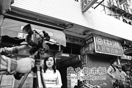报道所指的外币找换店铺,位于香港旺角奶路臣街得宝大厦一楼一个临街商铺。昨日下午,记者去到那里时,发现店铺已经关门。而香港多家媒体的记者在获知消息后,也先后赶到采访,但都吃了闭门羹。