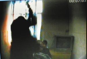 我马上站起来,一只手跟他搏斗,一只手打开了防盗门,当时的动静很大,外面接应的同事也都听见了,他们砸门砸了五六下,门开了,冲进来就控制了周某。