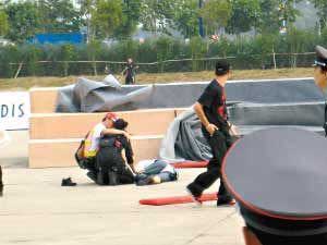 “如果这次活动的安全保护措施再多一点也许就不会出现这种情况了”,目击者小刘表示,活动现场分为专业车手试驾区和非专业车手试驾区两个区域,专业区内是一些专业车手表演漂移等专业车技,危险性较高。而非专业车手试驾区内则是一些试驾体验和一些简易的游戏。小刘说,事故发生时,该车只有白衣男子一人,但是他的驾驶水平并不高,不像是厂家聘请的专业人员,因为在事故发生后,车辆冲出十几米远,后来该男子要在工作人员指示下开出七八米才停下。