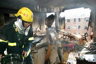 更让人触目惊心的是楼内的爆炸现场,据进入现场的消防人员介绍,整个五六层几乎被炸穿了,其中,502室已与602室贯穿,603室的楼板坍塌,7楼一间屋内的楼板也出现突起。四楼几家住户的防盗门也均被炸飞到屋内。
