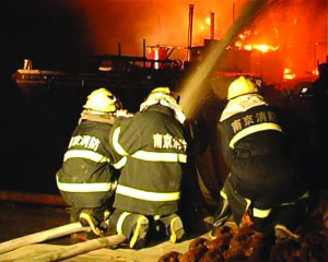 火情就是命令。接警后,下关消防中队3辆消防车迅速赶往江边,消防队员将消防车停在江边大堤上,然后怀抱水枪,冲上栈船,隔着数米远距离向起火的船喷水。