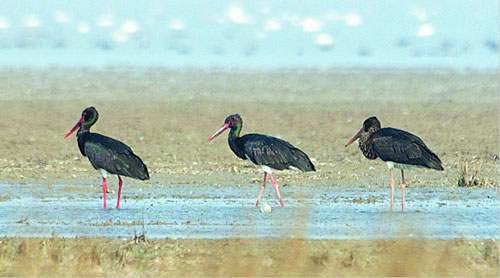 “黑鹳、白枕鹤、东方白鹳都是极为珍稀的候鸟群类。”西洞庭湖自然保护区工作人员告诉记者,黑鹳属于鹳形目、鹳科、鹳属,在我国东北、河北、新疆及甘肃北部繁殖,到长江流域及以南地区越冬,属于国家一级重点保护动物。黑鹳在全球的总数量仅存3000只左右,东部种群迁徙途中的数量仅存100余只。