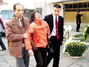 下午4点18分,李氏夫妇在记者的簇拥下来到医院太平间看女儿的遗体。看过遗体后,红着眼圈的李旭光搀着痛哭不止的妻子,一起去见医院领导和参与抢救的医生。