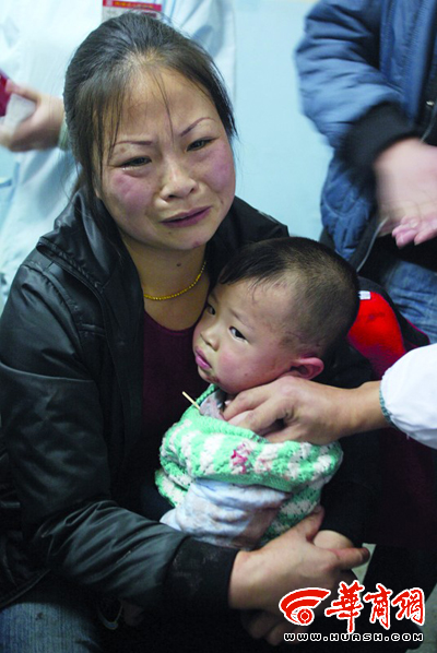 昨日下午2时50分左右,记者在省人民医院急诊科看到,被咬伤的男童正被母亲抱在怀里,由医生为其清理伤口。男童后脑上清晰可见五六道血口,耳部也有伤口,身着的毛衫上是血迹斑斑。此时,刚回过神来的男童也开始大声哭闹,撕心裂肺的哭声让所有在场的救护人员和邻居感到揪心。