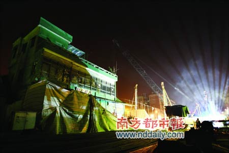 昨日下午6时,位于黄埔区石化路与大沙地东路口位置的地铁五号线工地内,施工仍然在热火朝天地进行着,打桩机发出震耳欲聋的轰鸣、焊接发出的闪光将周围照得如同白昼、四处飘散的黄土逼得过路人不得不捂紧口鼻……至少目前来看,地铁改变施工方式的做法并未改变陆秀华一家的现状,石化南一街6号,这栋已颇有名气的绿色小楼,依然身陷地铁工地的重围,继续其“钉子户”的生涯。