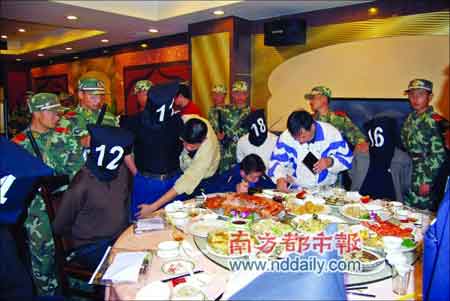 知情人说,抓捕行动事先有周密的部署,卧底干探已提供详细的线报,显示当晚“锤头笠”许建强的得力手下兼司机在4楼的30多个大型包房中举办的新居入伙酒席,出席者约200人。卧底提供的资料不仅包括宴会的时间、地点,还包括具体出席的人员名单与样貌特征。因此抓捕现场虽然有近1000人,但无关人员在现场就被疏散。一些为该团伙成员胁迫的送钱者即使与犯罪嫌疑人同桌也被迅速辨认出来,疏散出酒店。
