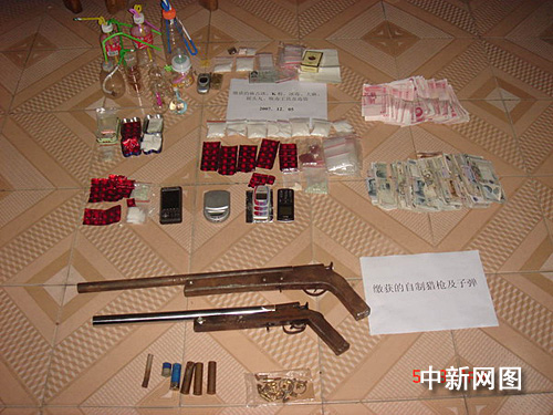 中新网韶关12月7日电(冯昶 陈文明 张黛虹)广东韶关乐昌市警方今天称,警方在日前开展的代号为“搜狐”的缉毒行动中,成功抓获了贩毒犯罪嫌疑人6名,当场缴获自制猎枪2支,子弹4发,摇头丸、冰毒等一大批毒品,以及毒资人民币5000多元。至此,一个在乐昌市区娱乐场所贩卖毒品的特大涉枪贩毒团伙被警方成功摧毁。