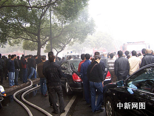 记者离火场五百米的温州小南门即能闻到刺鼻的烟味,记者赶到现场时,已经有十几辆消防车及救护车到场,街道上到处是水,留下灭火后的痕迹。目击者告诉中新社浙江分社记者,火是从一楼东面的花店开始的,随后蔓延到二楼;记者看到着火的温富大厦二楼是一家娱乐城,娱乐城正不断往四周冒着浓烟,还有消防车架起云梯从东面和南面用高压水枪往着火楼层里喷水灭火。