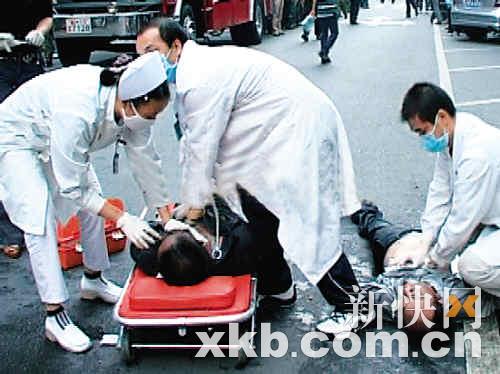 昨晚11时,记者在医院看到一名男伤者在抢救室抢救。据介绍,该伤者事发时正在咖啡厅2楼,由于咖啡厅浓烟滚滚,伤者吸入过多浓烟,他挣扎着打破咖啡厅中间的大玻璃窗后从楼上跳下,当场昏迷。当晚11时10分,该伤者被送到重症监护室。据知情人介绍,当时还有一名女士也从窗户跳下。